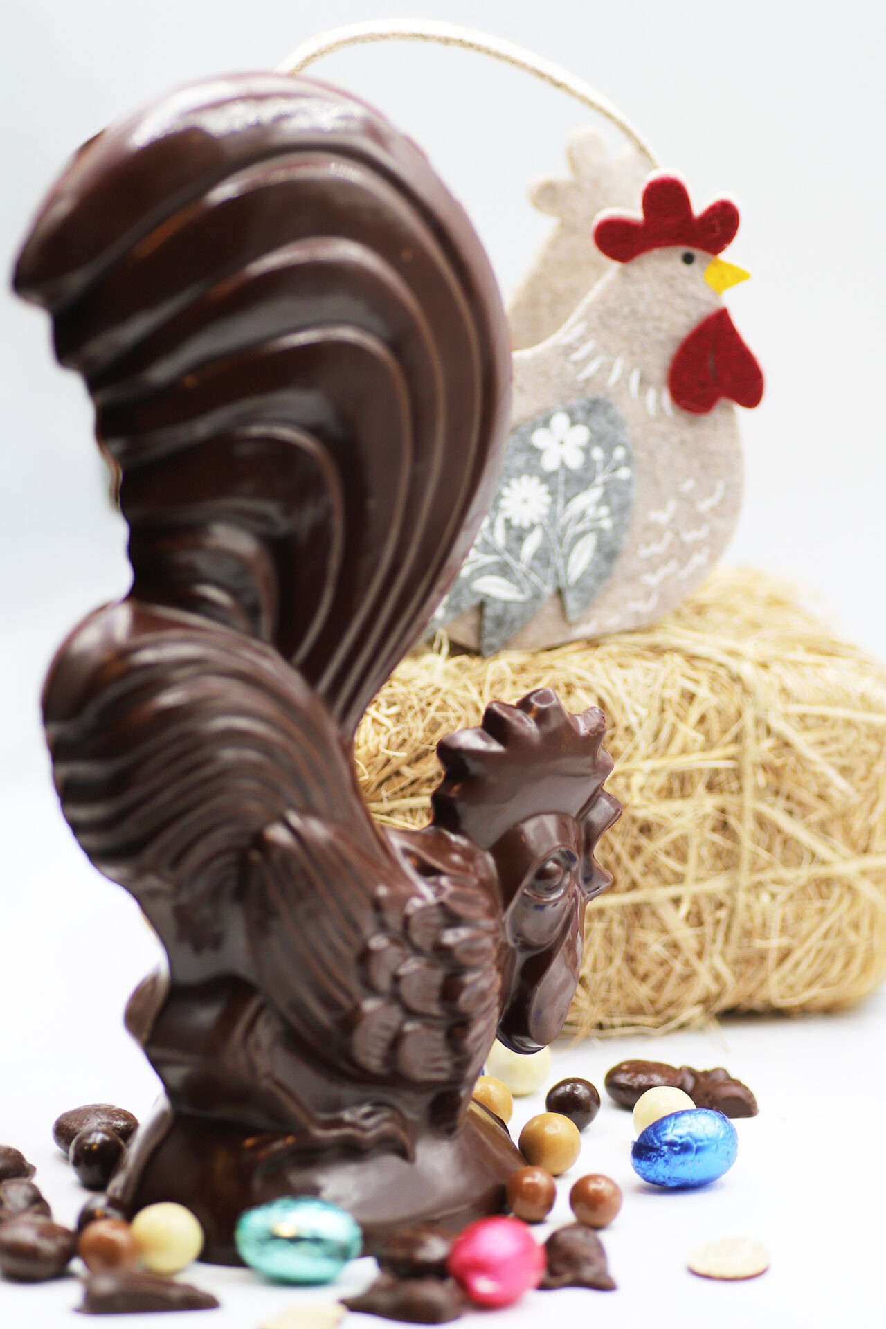Notre Coq Majestueux possède un design intemporel et une brillance satinée. Sa silhouette imposante en fait ainsi la pièce centrale de vos tables de fête. De plus, il constitue le cadeau de prestige par excellence pour vos proches. En effet, sa présentation artisanale témoigne d’un amour véritable pour la haute chocolaterie. Sa garniture riche permet ainsi de partager un moment de convivialité après le repas dominical de Pâques.