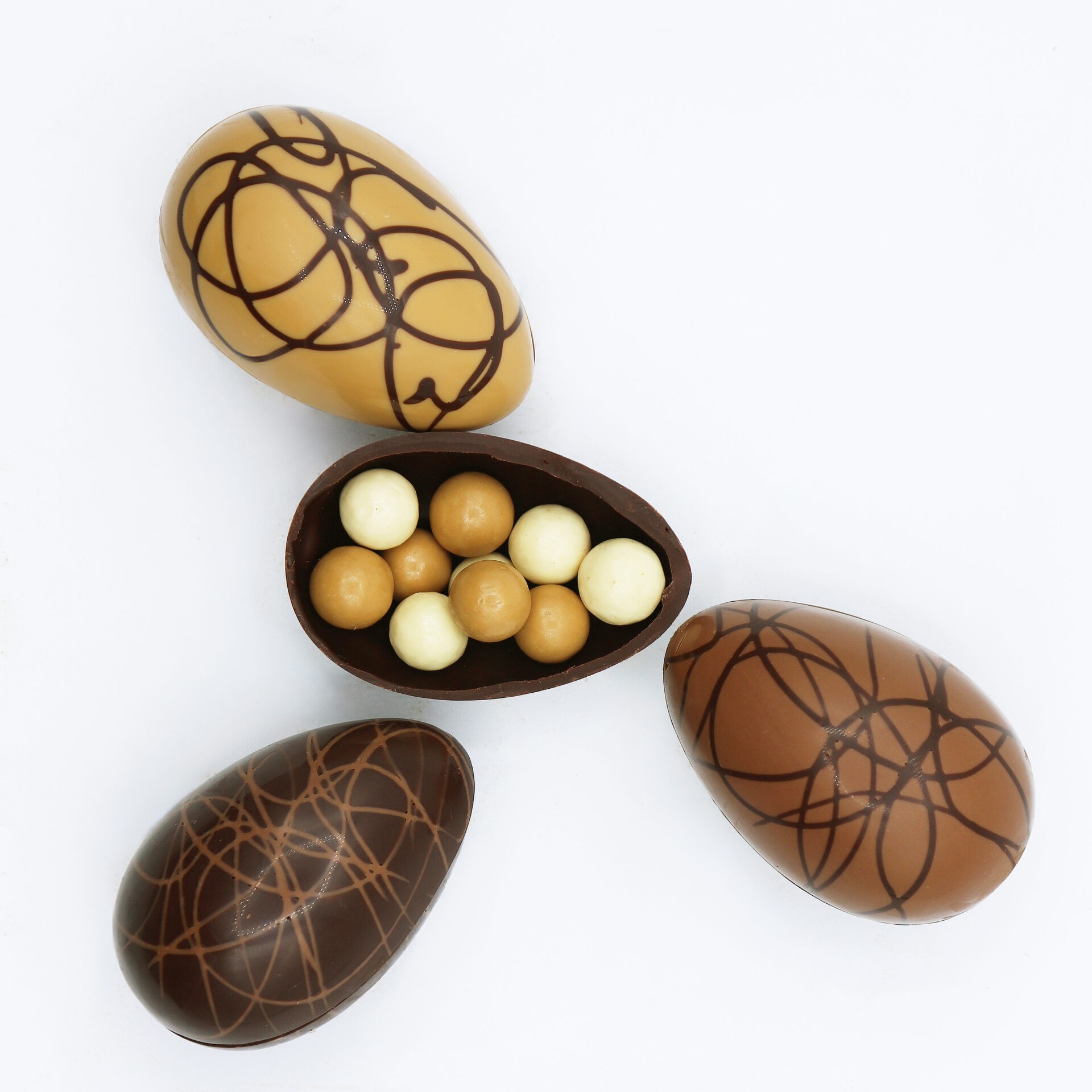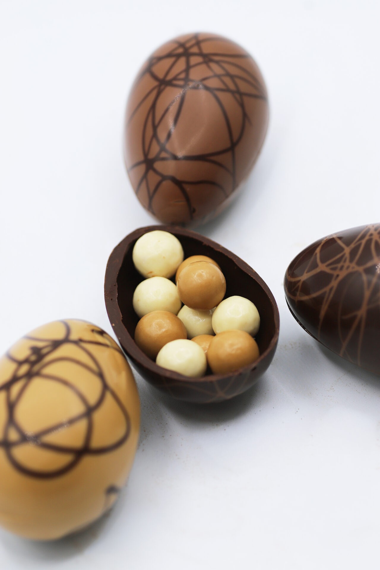 L’Œuf de Caille – Chocolat Noir est une création élégante qui célèbre toute l’intensité du chocolat noir. Réalisé avec soin, il dévoile une coque fine et croquante qui révèle un intérieur généreusement garni de délicieuses fritures en chocolat. Ainsi, chaque bouchée offre un équilibre parfait entre la richesse du chocolat noir et le plaisir des petites gourmandises cachées à l’intérieur.