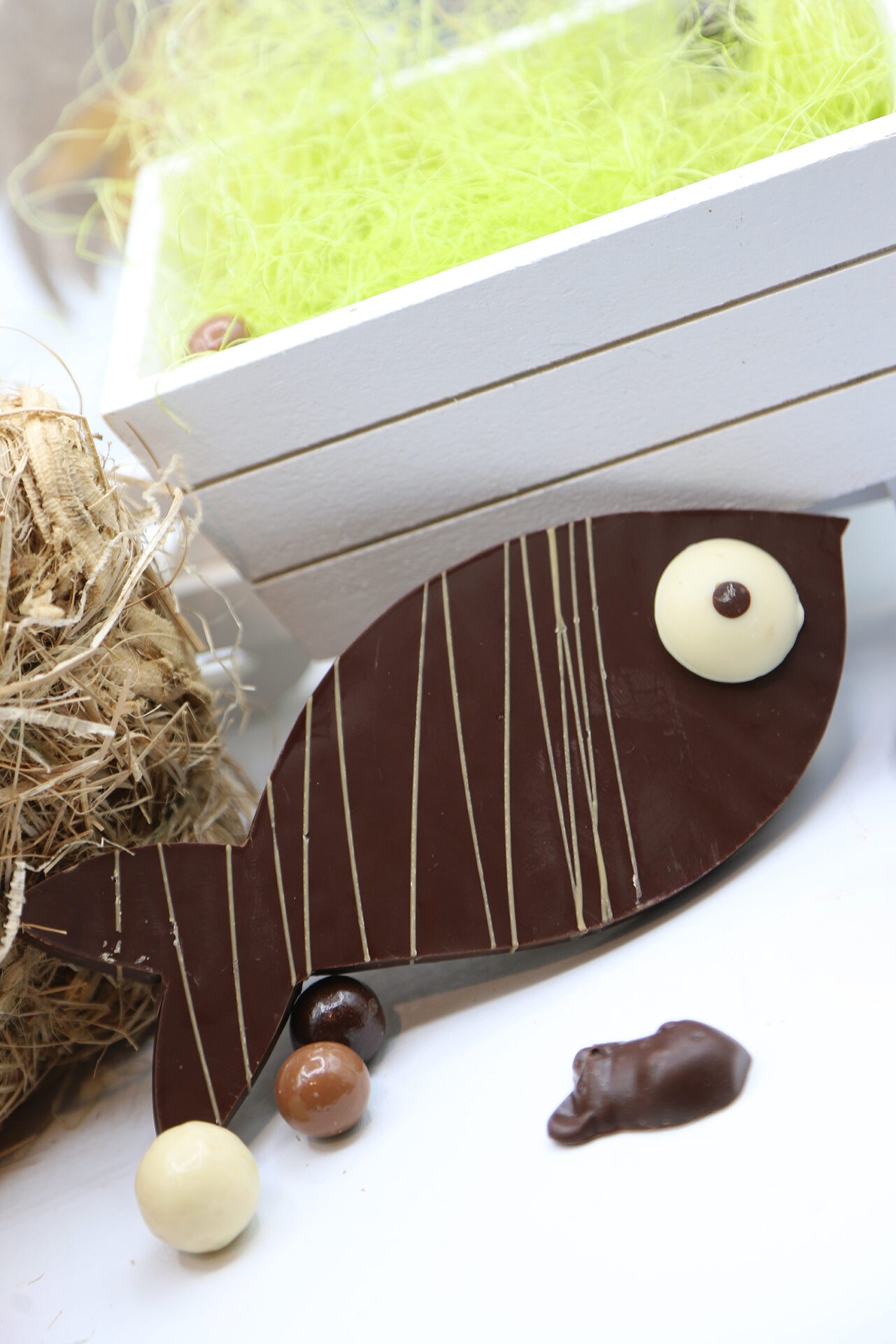 Loin des moulages industriels, ce poisson est une pièce de caractère. Sa silhouette élégante et ses finitions soignées en font un objet aussi beau à regarder qu’à déguster. C’est l’alliance parfaite entre le savoir-faire chocolatier et l’esprit ludique du 1er avril.