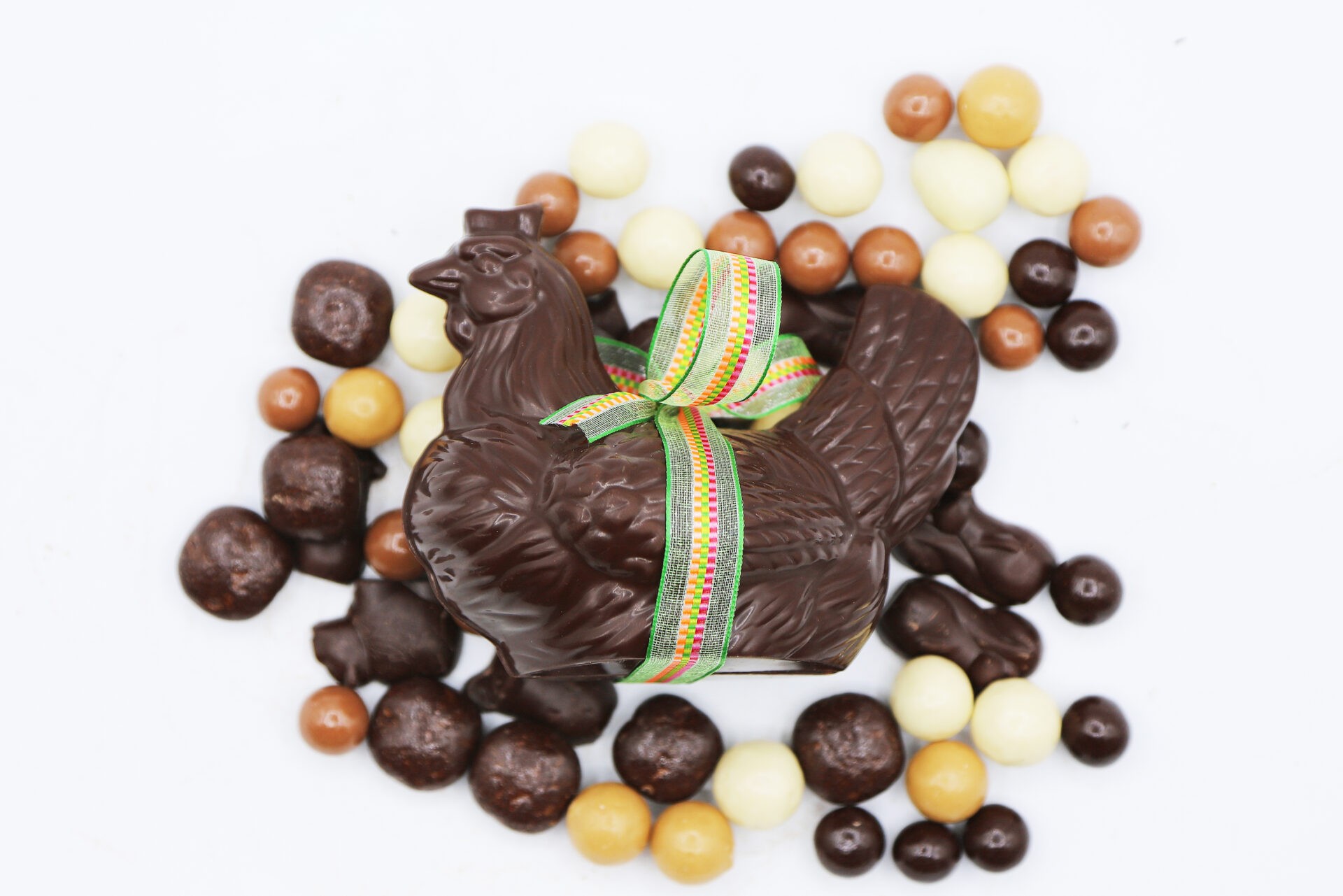 Bien plus qu’un simple moulage, notre Poule Tradition arbore un design soigné et des finitions impeccables. Sa robe sombre et intense ainsi que ses détails sculptés en font la star de vos paniers de Pâques. Elle est le cadeau idéal pour ceux qui cherchent à offrir un chocolat aussi beau que bon, loin des standards industriels. Que ce soit pour une dégustation en fin de repas ou pour une chasse aux œufs sophistiquée, elle apporte une touche de noblesse à vos célébrations.