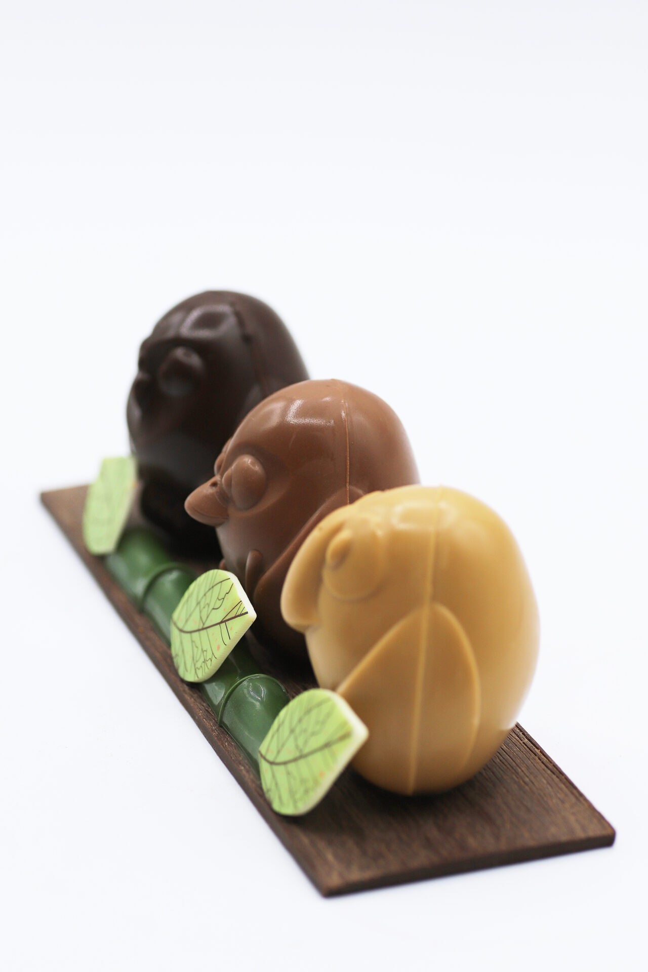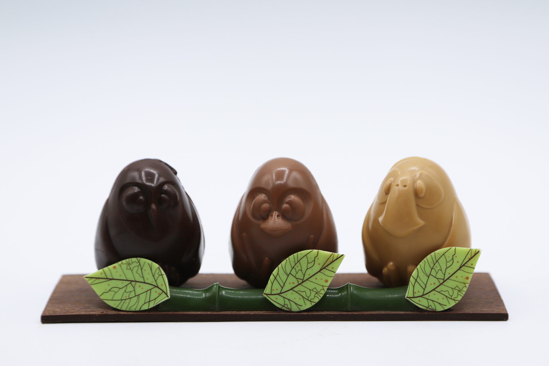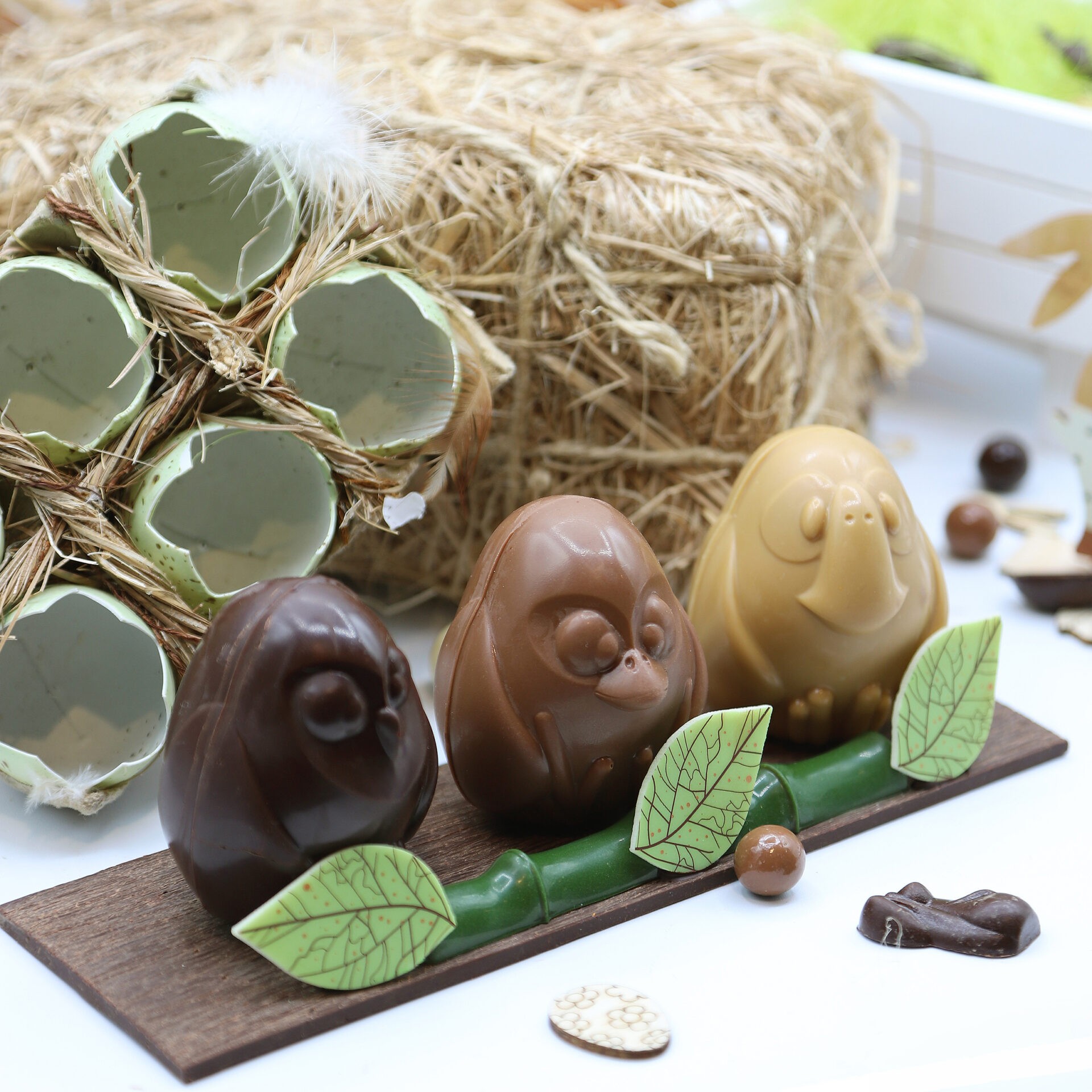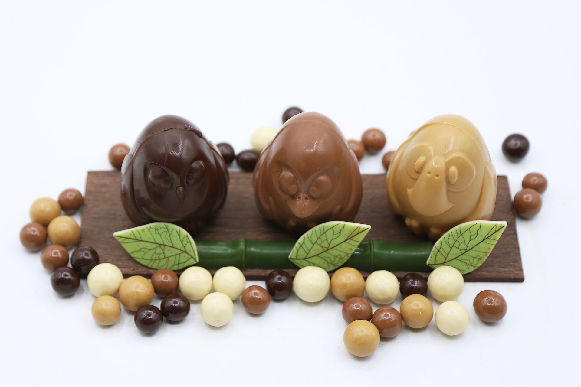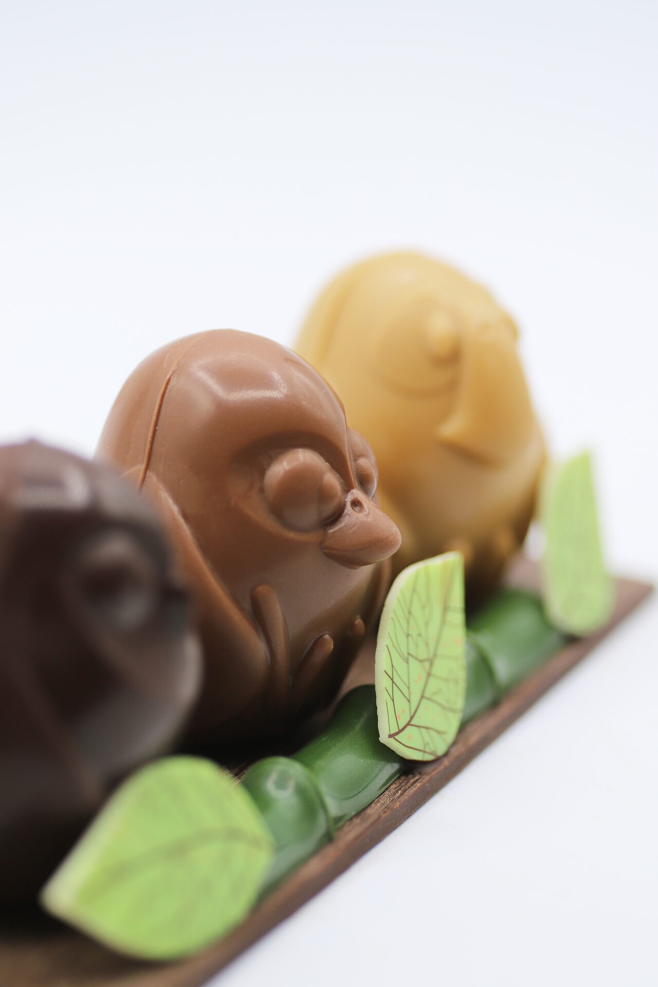Notre Trilogie Piou Piou possède un design minimaliste et très soigné. Ses trois nuances de chocolat en font ainsi la star incontestée de vos paniers de Pâques. De plus, elle constitue le cadeau parfait pour ceux qui hésitent entre plusieurs saveurs. En effet, sa présentation en trio permet de satisfaire toutes les envies de la famille. Sa garniture généreuse permet ainsi de partager un moment de convivialité lors de la découverte des trésors cachés.