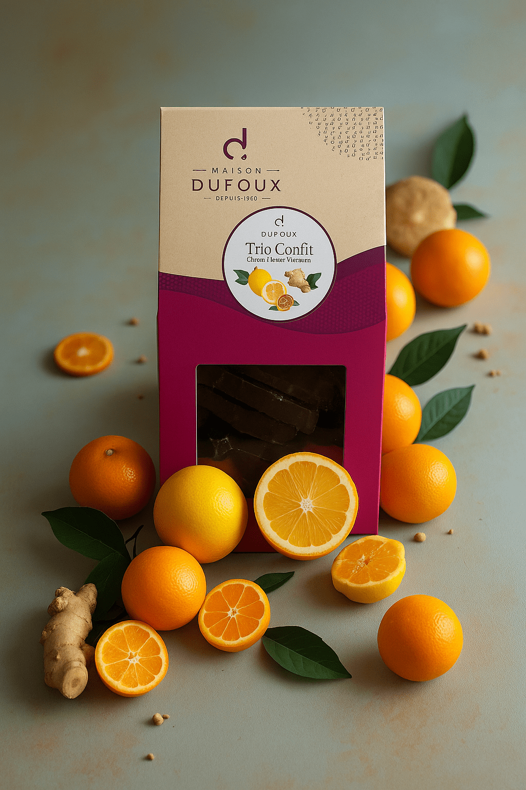Découvrez le trio de confit artisanaux de la Maison Dufoux, une création d’exception qui célèbre le goût, la finesse et le savoir-faire français. Ce coffret unique réunit trois saveurs emblématiques – citron, gingembre et pamplemousse – soigneusement préparées selon les méthodes artisanales traditionnelles, dans le respect des produits et des arômes naturels. Chaque pot renferme un concentré d’authenticité, pensé pour sublimer vos instants gourmands du quotidien comme vos grandes occasions.